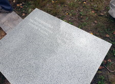 Следующим этапом в работе с могилой стала установка нового памятника, выполненного из светлого гранита и рассчитанного на двух покойных. Плиту доставили на кладбище практически сразу после изготовления, так что надпись пришлось делать уже по месту. Впрочем, на качестве работы это не коим образом не отразилось.